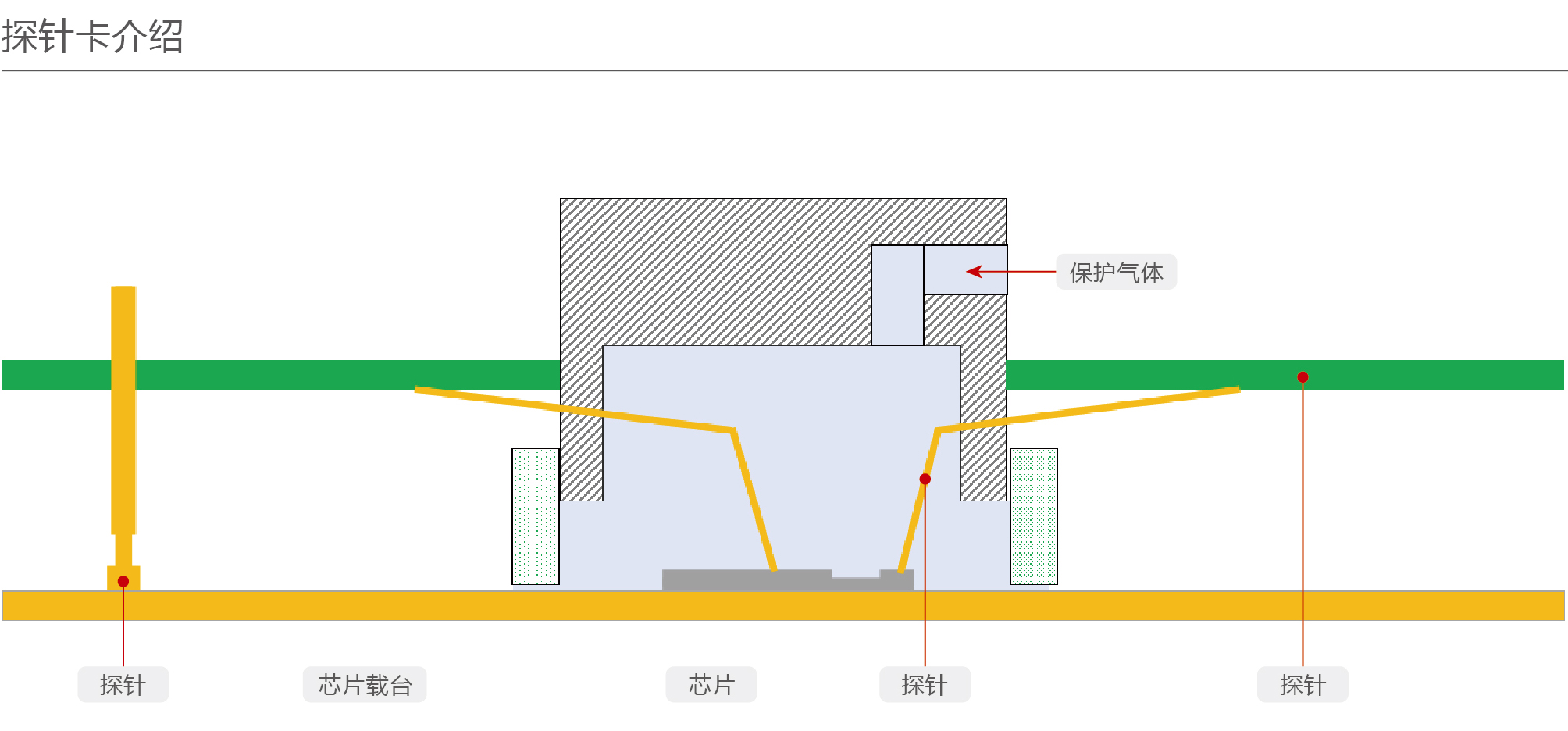 测试站的升降机构带动芯片载台升降,直至探针卡的的探针接触芯片为止,探针卡的压力室密封,自动校准芯片的高度。