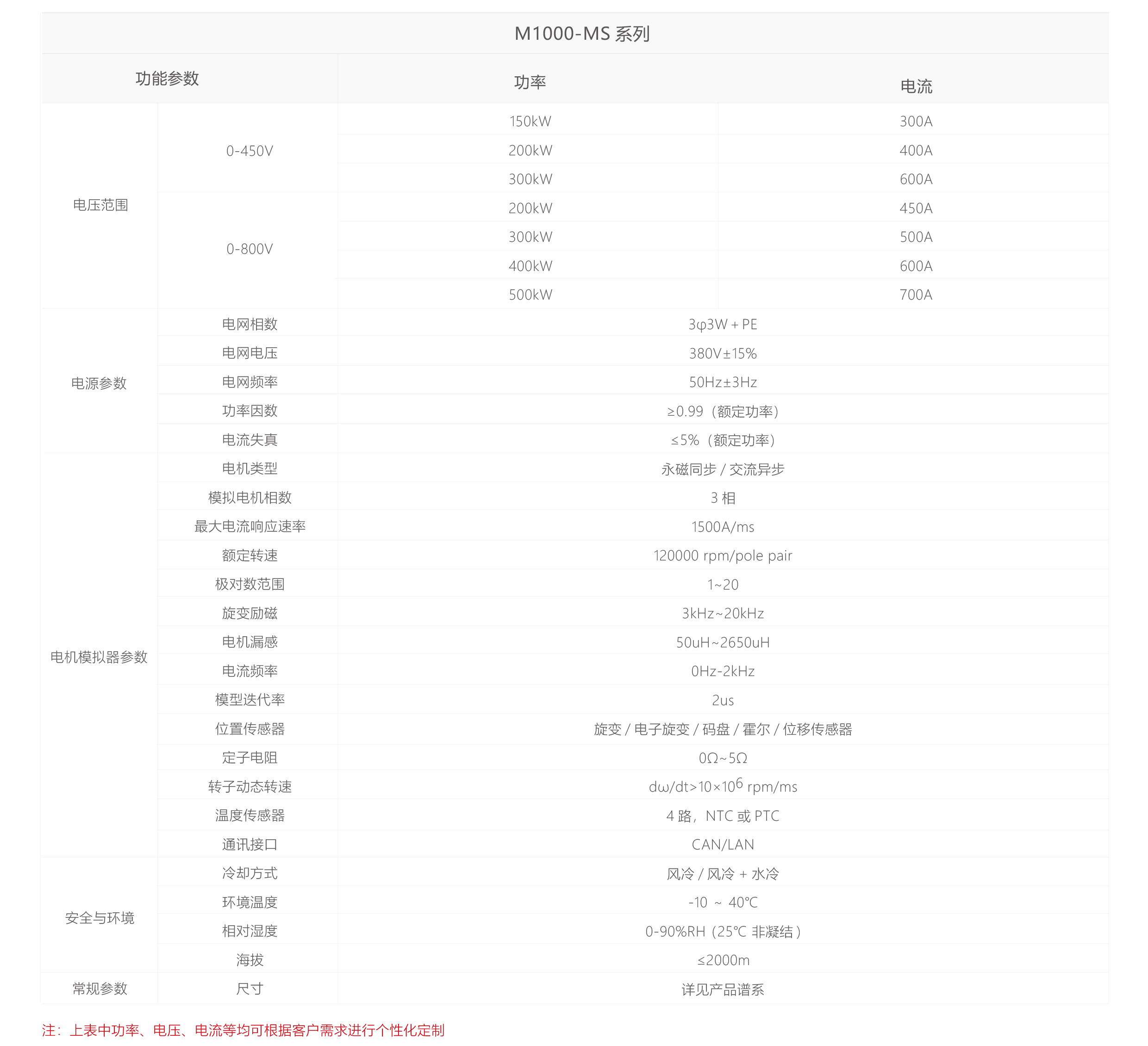 M1000-MS系列电机模拟器是一款电机+负载模拟一体化新型电力电子装置,内含永磁同步电机PMSM、异步电机ASM 等动态学模型和负载模型,可以精确实现电机与负载特性模拟。广泛应用于驱动电机控制器、通用变频器的开发和测试,满足电动汽车用驱动电机控制器的功能测试、性能测试、耐久测试、系统标定、故障注入以及功能安全等测试应用。