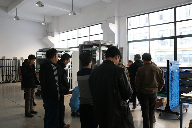 在生产区域,新产品鉴定委员会对我司整齐规范的试验室赞不绝口,3项新产品卓越稳定的性能,尤其是EVS系列电池模拟器强大先进的功能更是引发了行业专家的热烈讨论。与会的省、市领导在听取了我司副总经理蒋佳平的汇报后,针对我司未来的发展愿景给出了宝贵的建议和意见,提出了更高的期许!