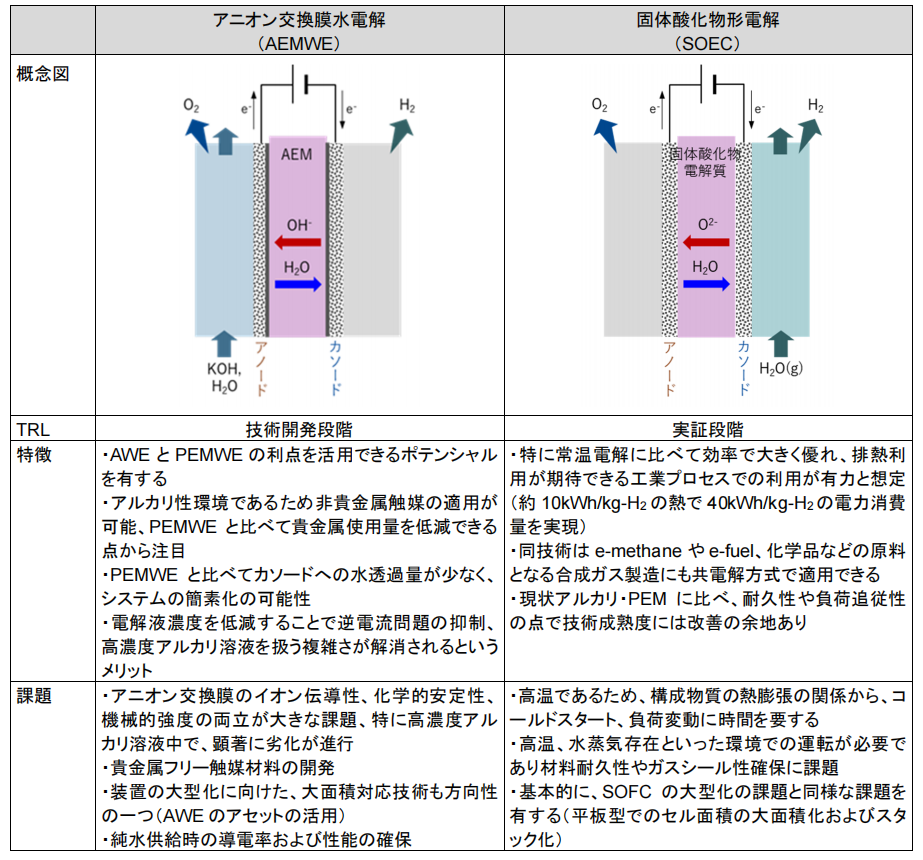 表2-2 水电解种类的特征(AEMWE·SOEC)