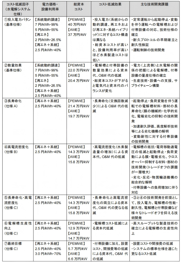 表1.5.3-4 氢气生产成本降低对策和技术开发课题