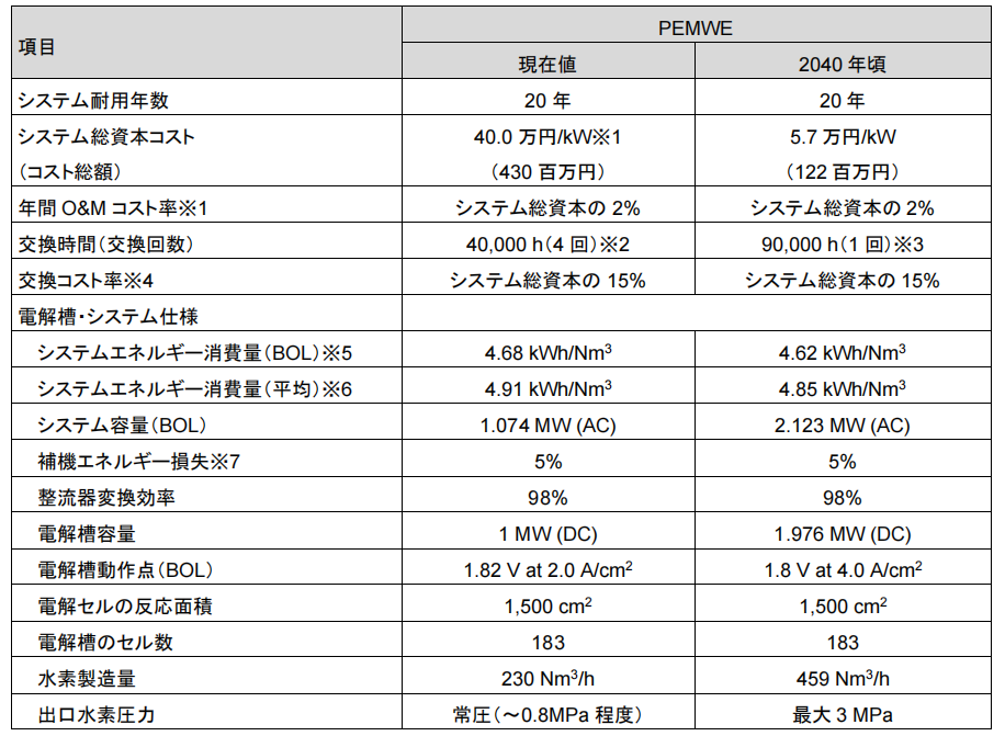 表2.2.6-2 PEMWE的技术开发项目和目标值